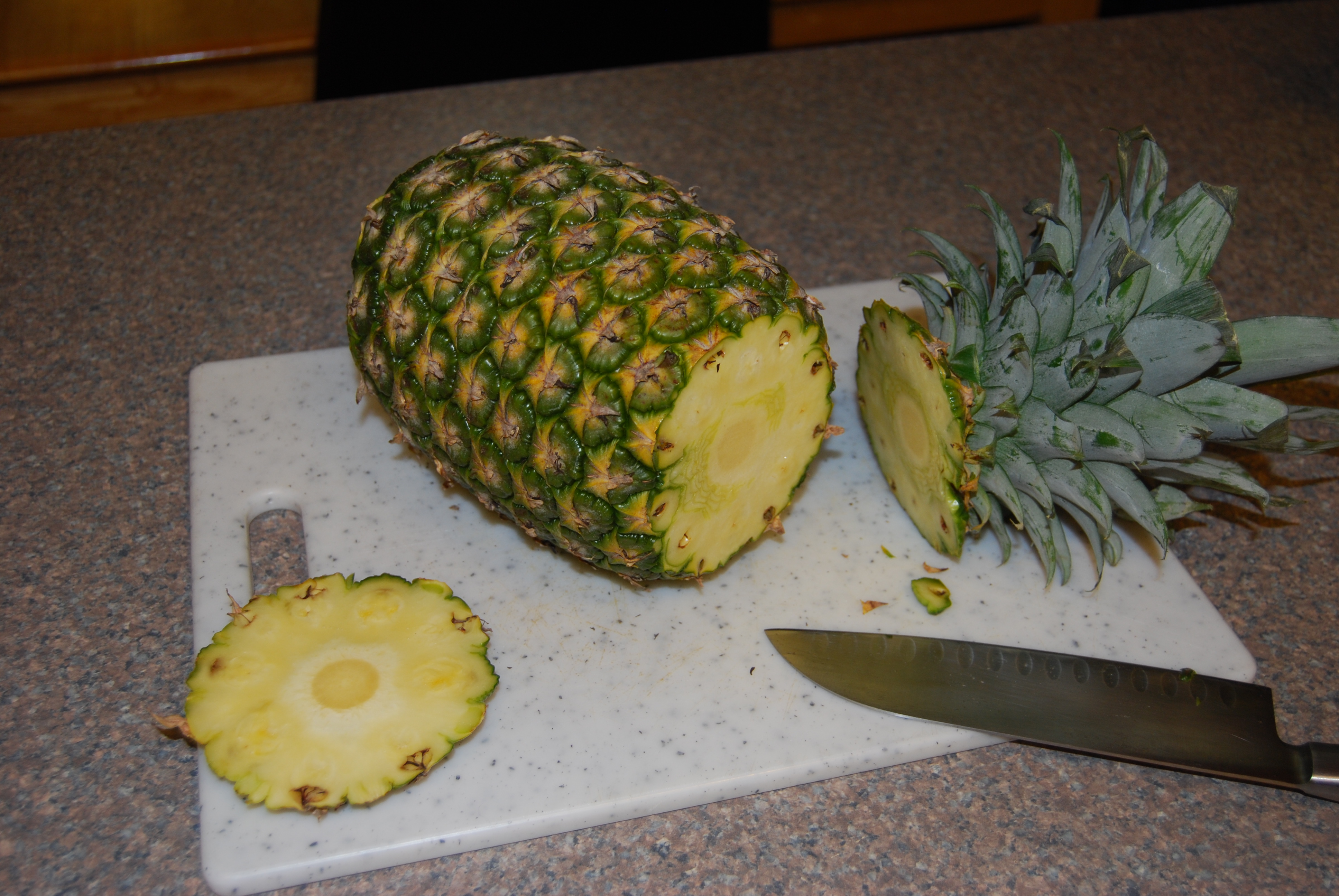 For my entire life – until this week, pineapples either came in a can, on a buffet or on a plate a restaurant server placed in front of me. “Real” pineapples were impenetrable. I mean, look at it. In my mind, in might as well have been a coconut. Or a big rock.