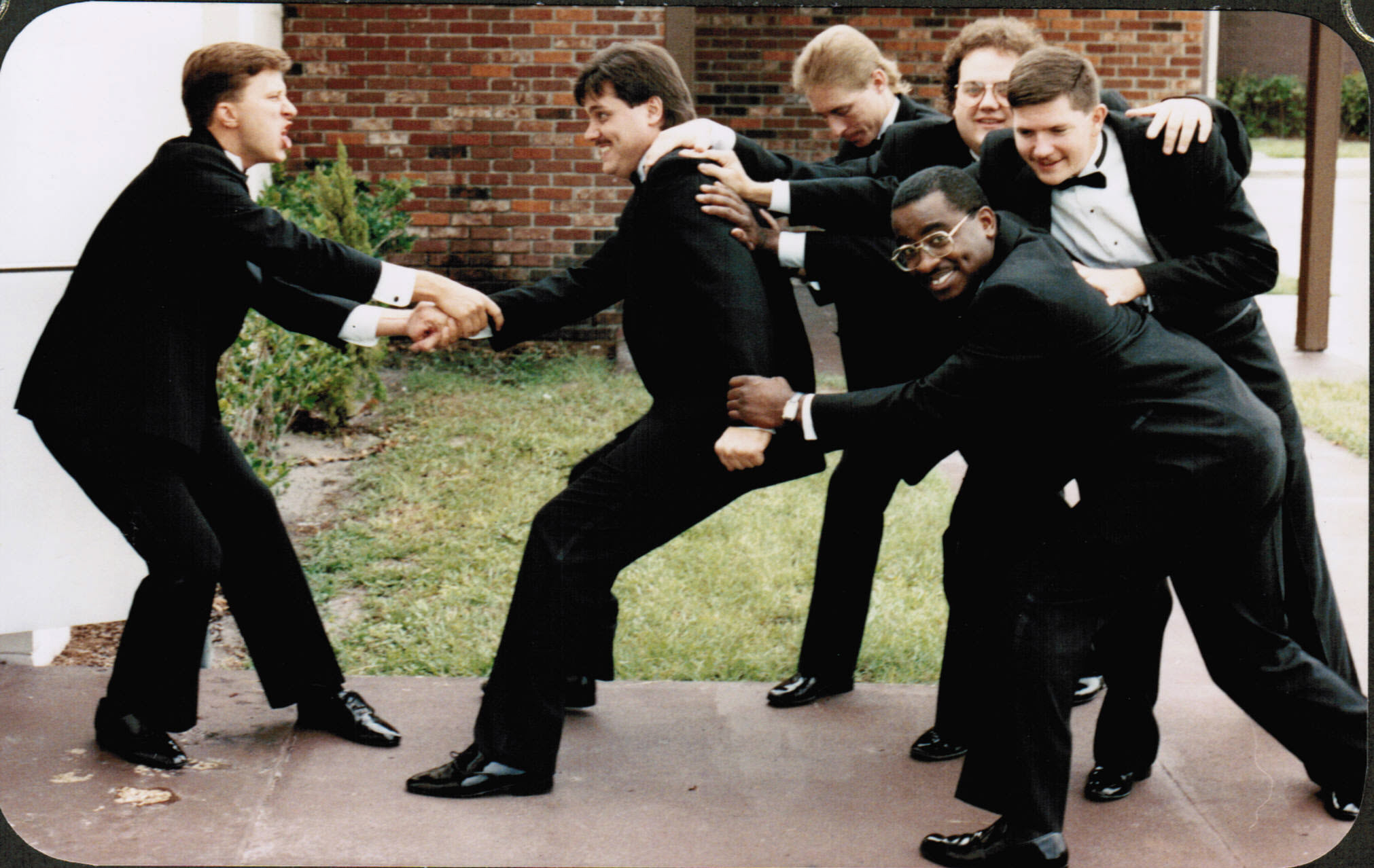 But for me, the word “push” implies that I’m resisting some force. For some reason, two photos came to my mind. They were taken on my wedding day. The groomsmen were having a little fun with my LastFiance. Check it out: